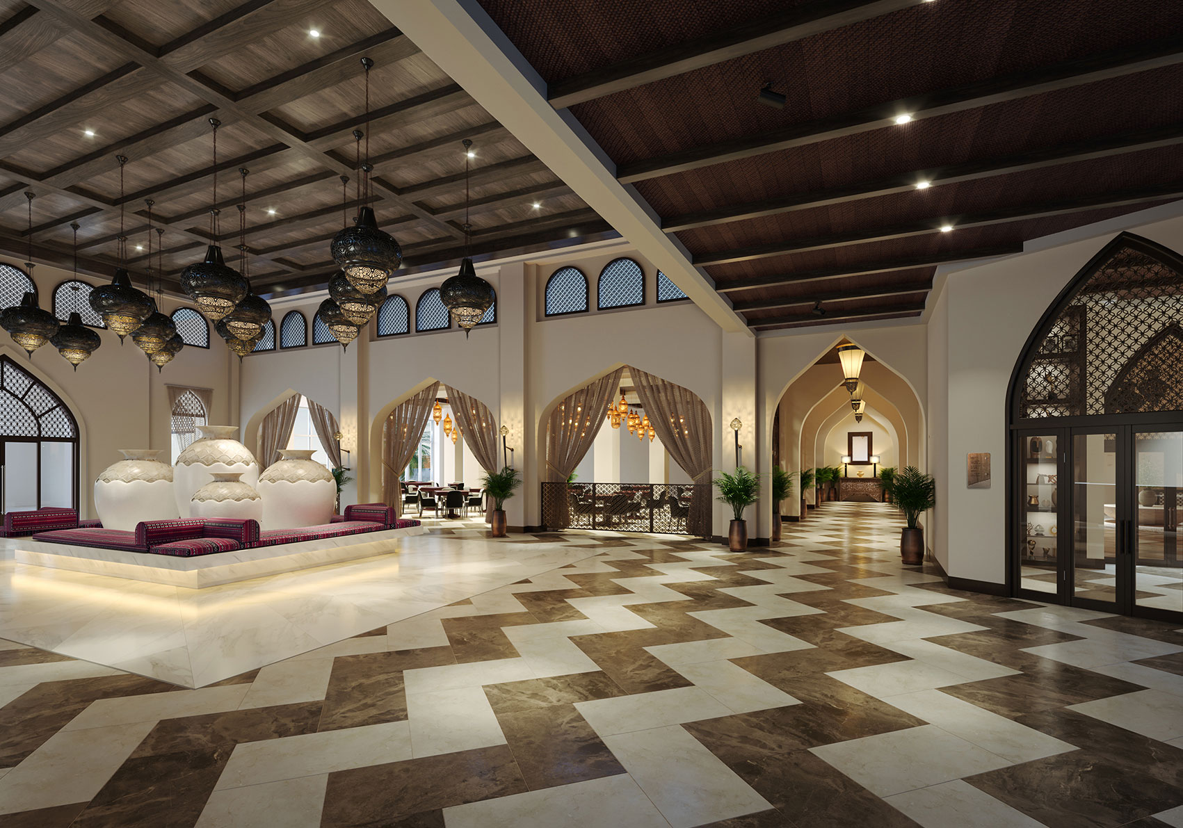 A constant variety and ever-changing choices in the breakfast, lunch and dinner buffet menu bring guests an excellent sampling of international dishes and desserts. This restaurant at the Tilal Liwa Hotel offers all-day dining and serves breakfast, lunch and dinner, with a wide selection of contemporary and regional cuisine dished up from a vibrant open kitchen. The Arabic interior design has a theatrical flair, with genuine caring and attention to every detail clearly evident throughout the restaurant.